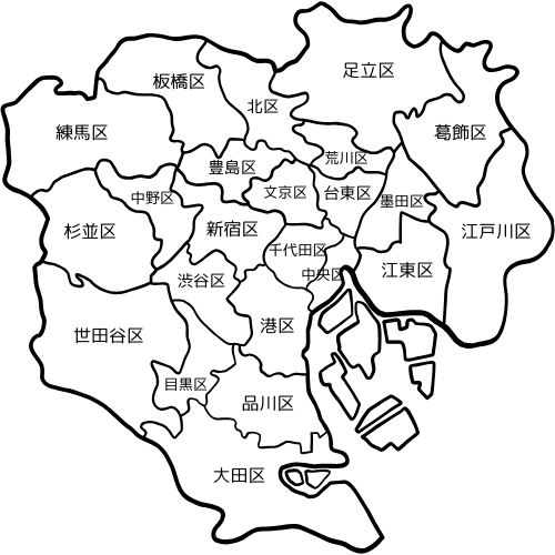 新宿区、渋谷区、大田区、中野区、港区、千代田区、中央区、文京区、豊島区